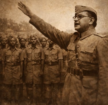 In 1943, Netaji did the unthinkable. He founded the Indian National Army (INA)—a military force dedicated to liberating India through armed struggle. Under his visionary leadership, soldiers from across the country united with a singular purpose: to drive out the British and establish an independent nation.