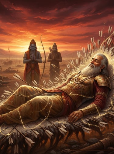 Blessed with the boon of Ichha Mrityu — the freedom to choose the time of his death — Bhishma stood as a bridge between fate and will. He accepted destiny, yet never stopped choosing righteousness within it.