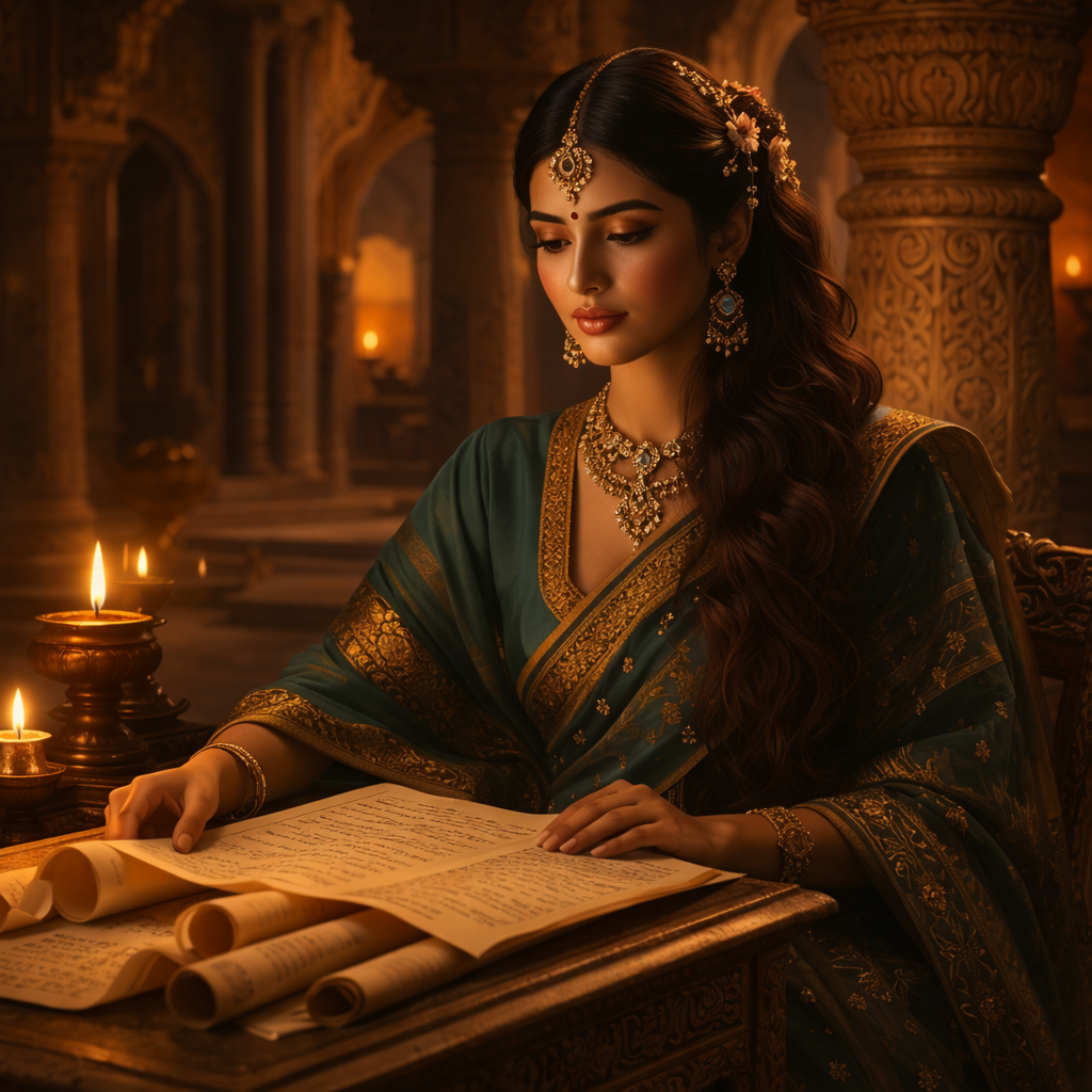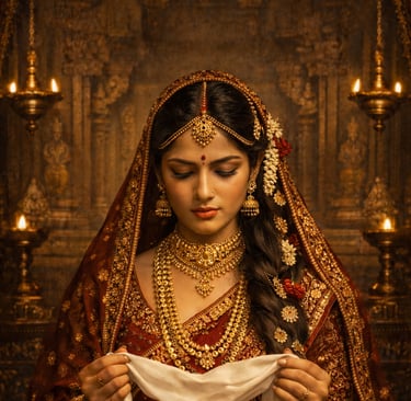 Born to King Subala in the prosperous kingdom of Gandhara, Gandhari was no ordinary princess. She was brilliant, deeply learned in the Vedas, and raised with the discipline of a warrior and the devotion of a saint. Her beauty was matched only by her intellect — a woman forged equally by knowledge and grace.