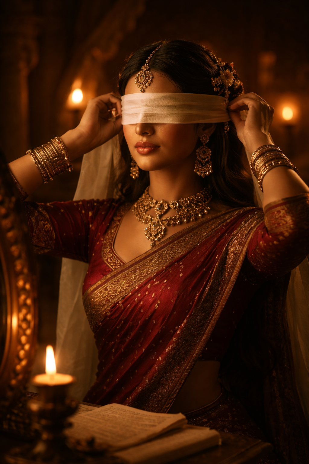 When Gandhari learned she was to marry Dhritarashtra — a king born blind — she made a decision that stunned every royal court in Aryavarta.