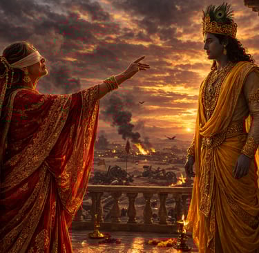 And then Gandhari — a woman of lifelong penance, whose spiritual power had accumulated across decades of sacrifice — cursed Krishna himself.