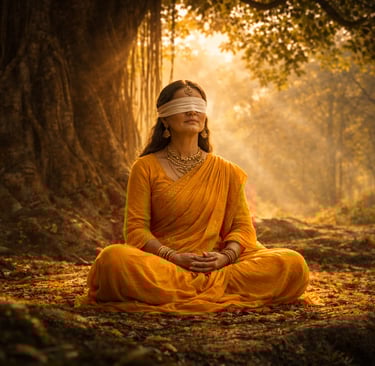 Discover the complete Gandhari Mahabharata visual story — the blindfolded queen who chose darkness for love, warned a son who wouldn't listen, cursed Krishna in grief, and found peace only in the forest. Life lessons from the Mahabharata's most misunderstood woman.