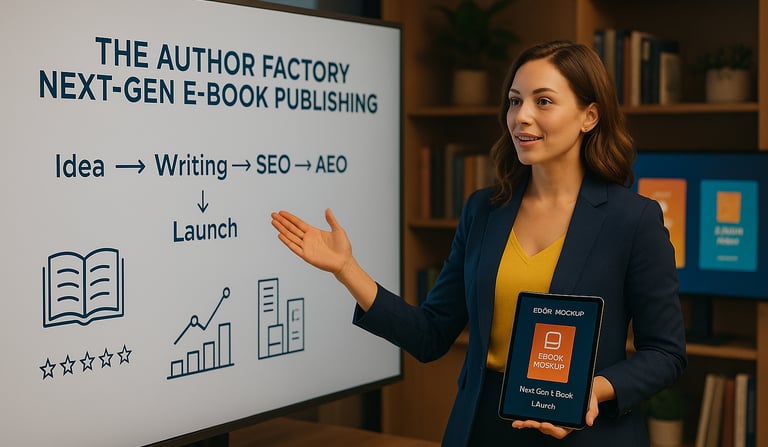 Next-gen e-book publishing combines creative writing, seamless formatting, SEO structure and AEO clarity. The Author Factory helps authors create e-books that rank, sell and inspire.