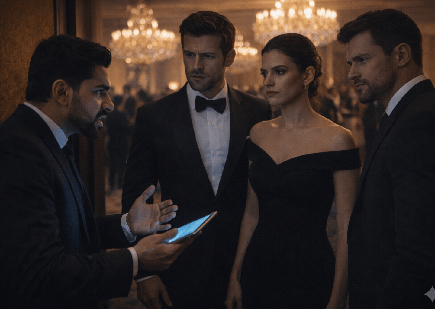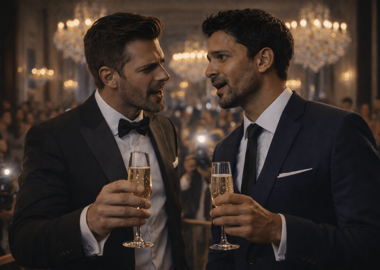 Setting: Two hours into the gala. The party is reaching its peak—drugs circulate discreetly, couples disappear into private rooms, the music pulses with bass that vibrates through the floor.