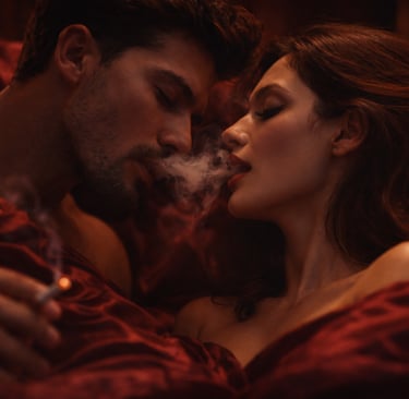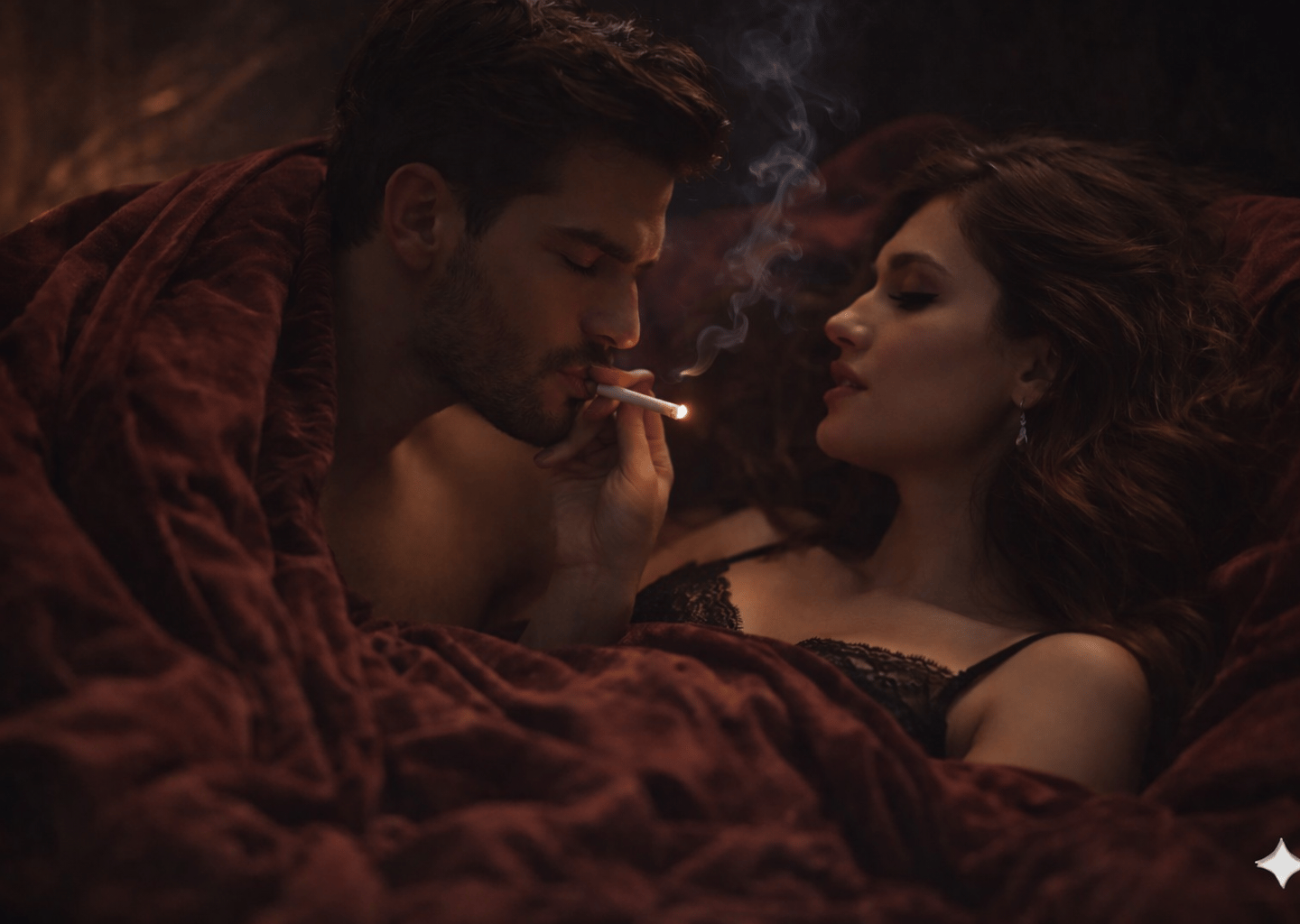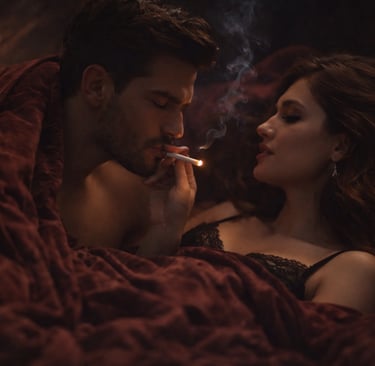 Zara: (A seductive, dark smile playing on her lips as she pulls him closer) "Rules are for people like Rohan. For people who think love is a shield. We know better. We know that the only thing real is the weight of this body... and the heat of this moment. Don't talk. Just make me forget there's a world outside this bed."