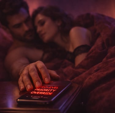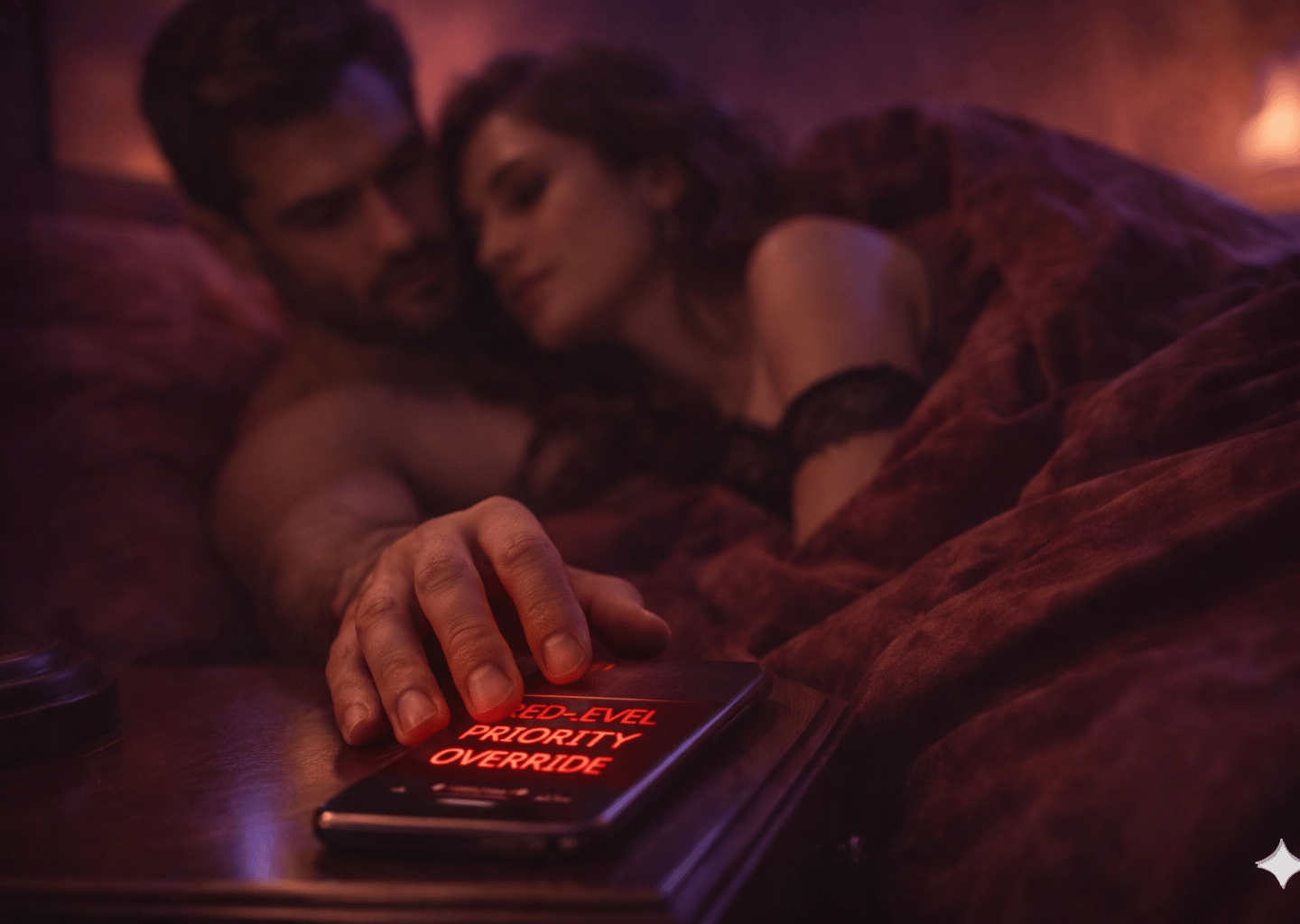 Suddenly, a sharp, shrill ring pierces the room—not the soft chime of a regular call, but the harsh, urgent tone of a Red-Level Priority Override. The emergency line that should never ring.
