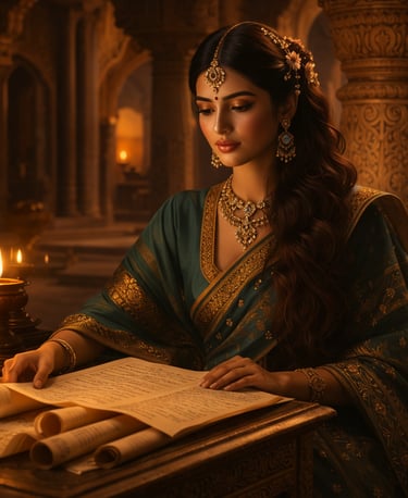 Born to King Subala in the prosperous kingdom of Gandhara, Gandhari was no ordinary princess. She was brilliant, deeply learned in the Vedas, and raised with the discipline of a warrior and the devotion of a saint. Her beauty was matched only by her intellect — a woman forged equally by knowledge and grace.