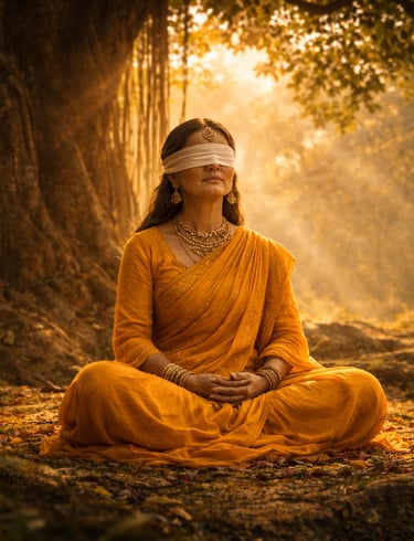 In a world where a woman's worth was measured by her husband's throne, Gandhari carried something far rarer — a sense of self that no palace could give her and no arrangement could take away.