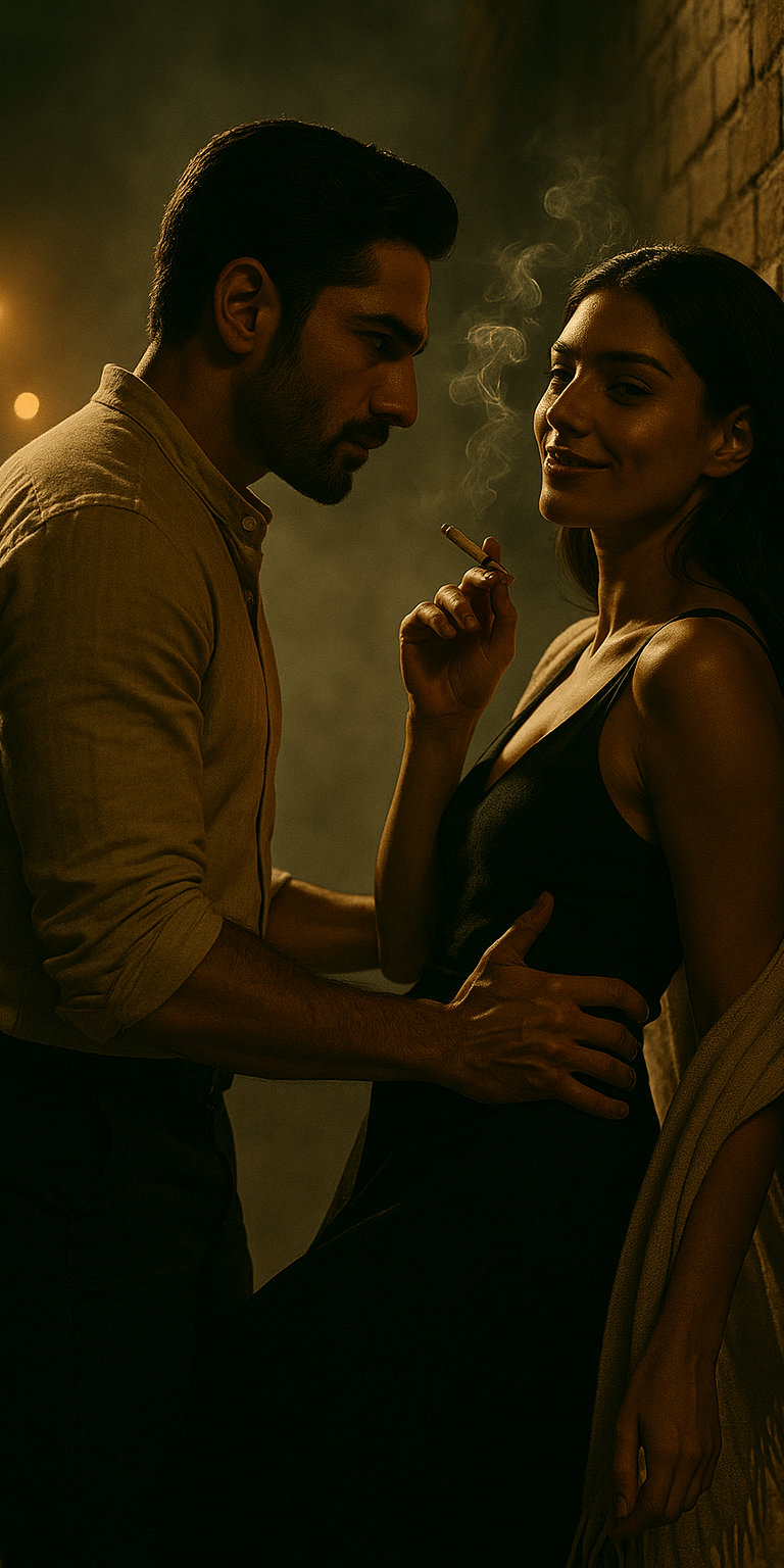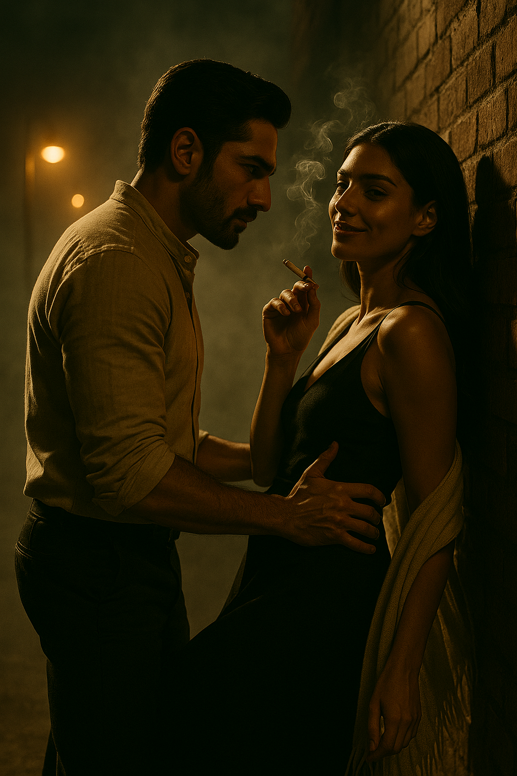 Priya lifted her cigarette again, the ember glowing like a predator’s eye, and took a slow drag. She exhaled toward him, the smoke curling into the space between their bodies like a whispered dare.